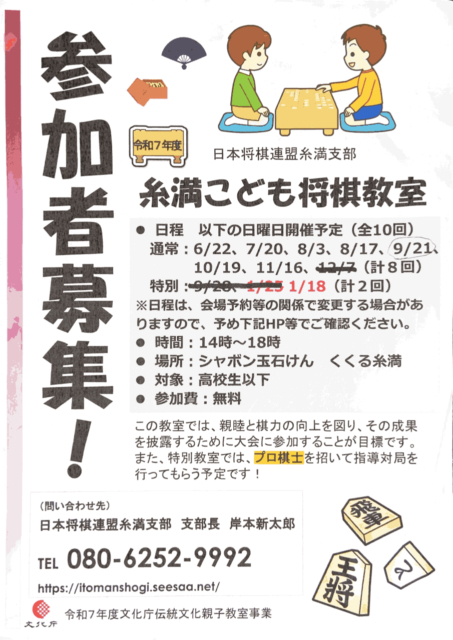 小禄・糸満で子供向け将棋教室が開催されます(2025/10/13,10/19…)