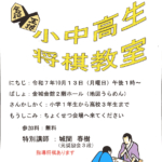 小中高生将棋教室が開催されます(2025/9/15 月祝)